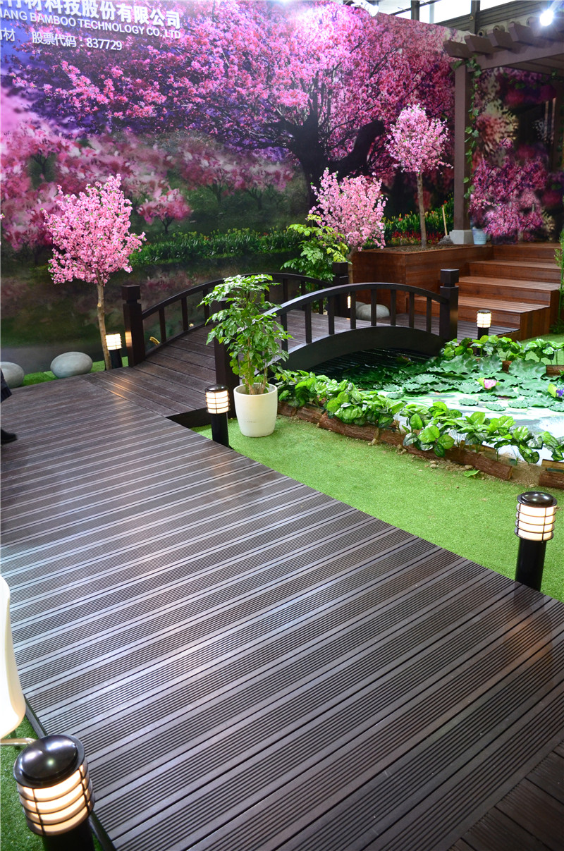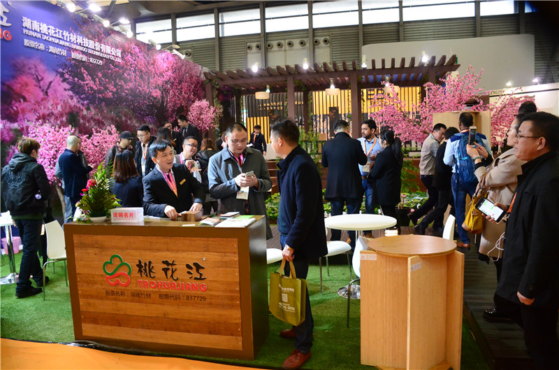為期三天的中國國際地面材料及鋪裝技術(shù)博覽會圓滿落幕了,桃花江竹材在此次展會中取得了耀眼的成績。桃花江竹材的展臺,像一座小型的后花園,整個空間布局巧妙而精美,經(jīng)過人工雕琢后的竹子在這座花園中形態(tài)各異。
